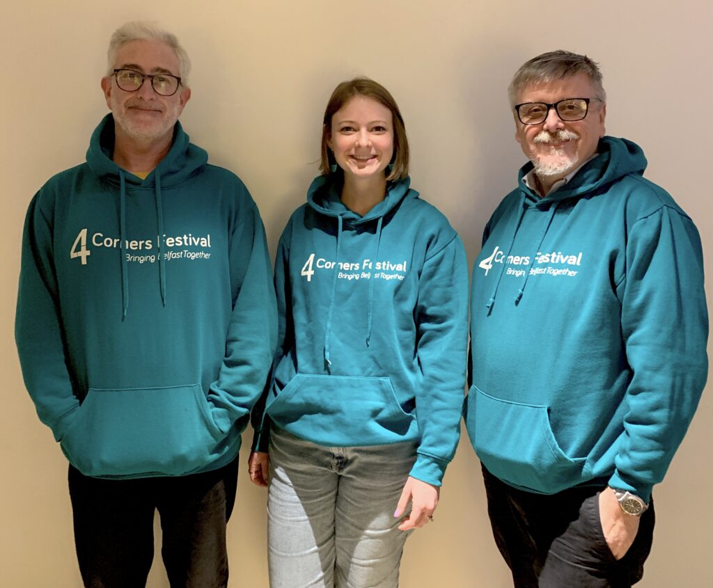 The 4 Corners Festival is supported by The Executive Office’s Central Good Relations Fund, The Department of Foreign Affairs Reconciliation Fund and Belfast City Council Good Relations Fund, St Anne’s Cathedral Sitout and Linen Quarter BID.